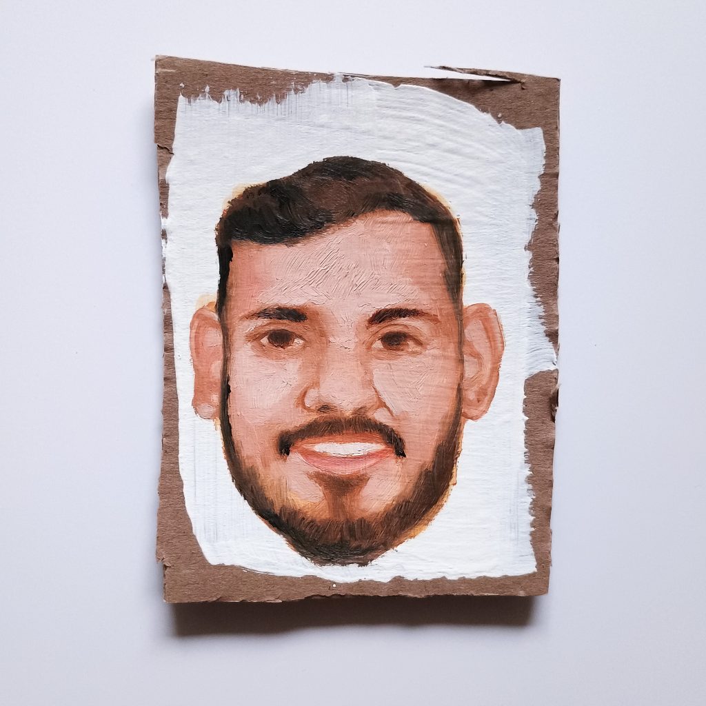 In January 2025, I painted a portrait every day from 500queerscientists.com. 500 Queer Scientists is a visibility campaign for LGBTQIA+ people working in STEM, initially created to provide a sense of community for marginalized queer people. Since its inception, over 500 LGBTQIA+ people have shared their stories and photos. These stories and photos are particularly powerful in academia where there are pressures and expectations to conform to approach a straight white male. In a harsh environment where clinical depression is multitudes higher than the general public, being openly queer is incredibly brave.